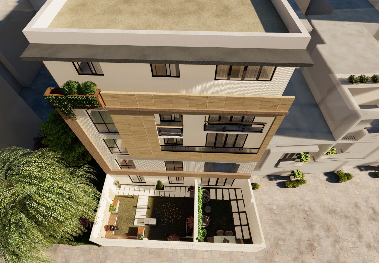 La résidence se compose de 11 appartements de différents types avec un niveau de parking en sous sol de 13 places , le parking est relié directement au RDC par un escalier séparé.